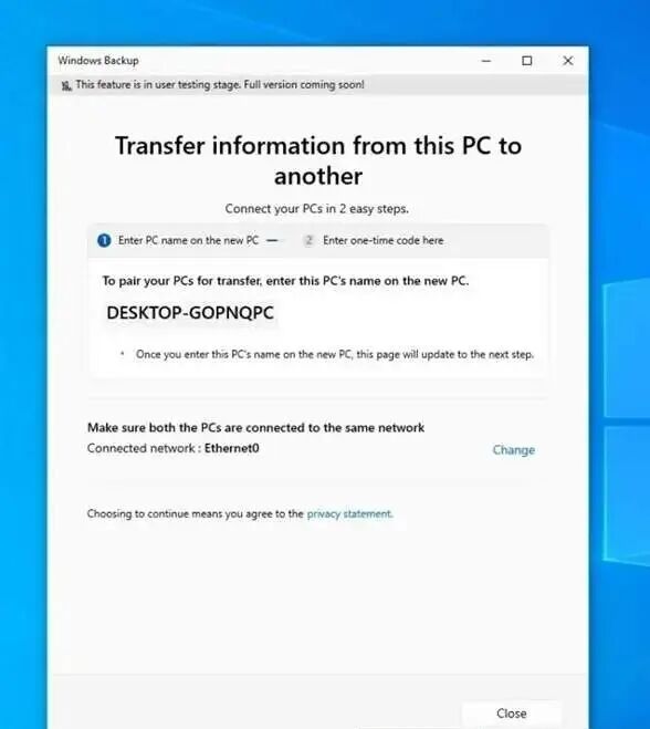 微软在Windows 10 KB5061087更新中引入了一项名为“PC to PC”传输功能,该功能并非一个全新应用,而是集成在Windows备份工具中。