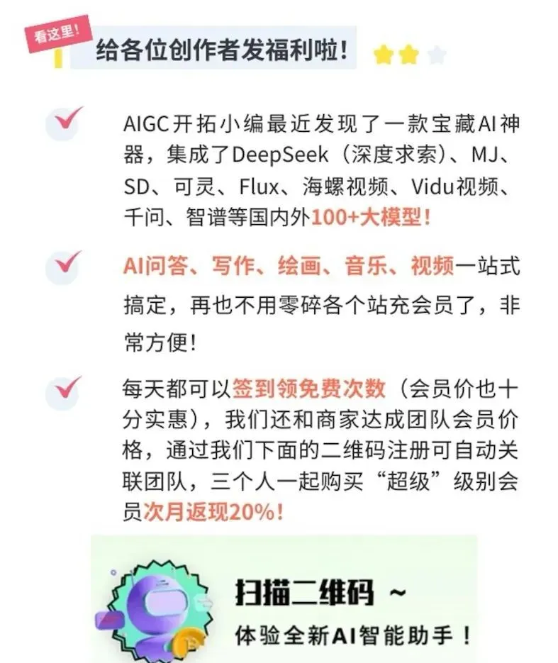 AIGC开拓致力于推动AI与产业融合,构建创作者生态平台,开发智能内容、教育优化和健康管理解决方案,引领智能科技与社会发展的深度融合,开拓AIGC新市场,打造AIGC创作者的宣传平台。