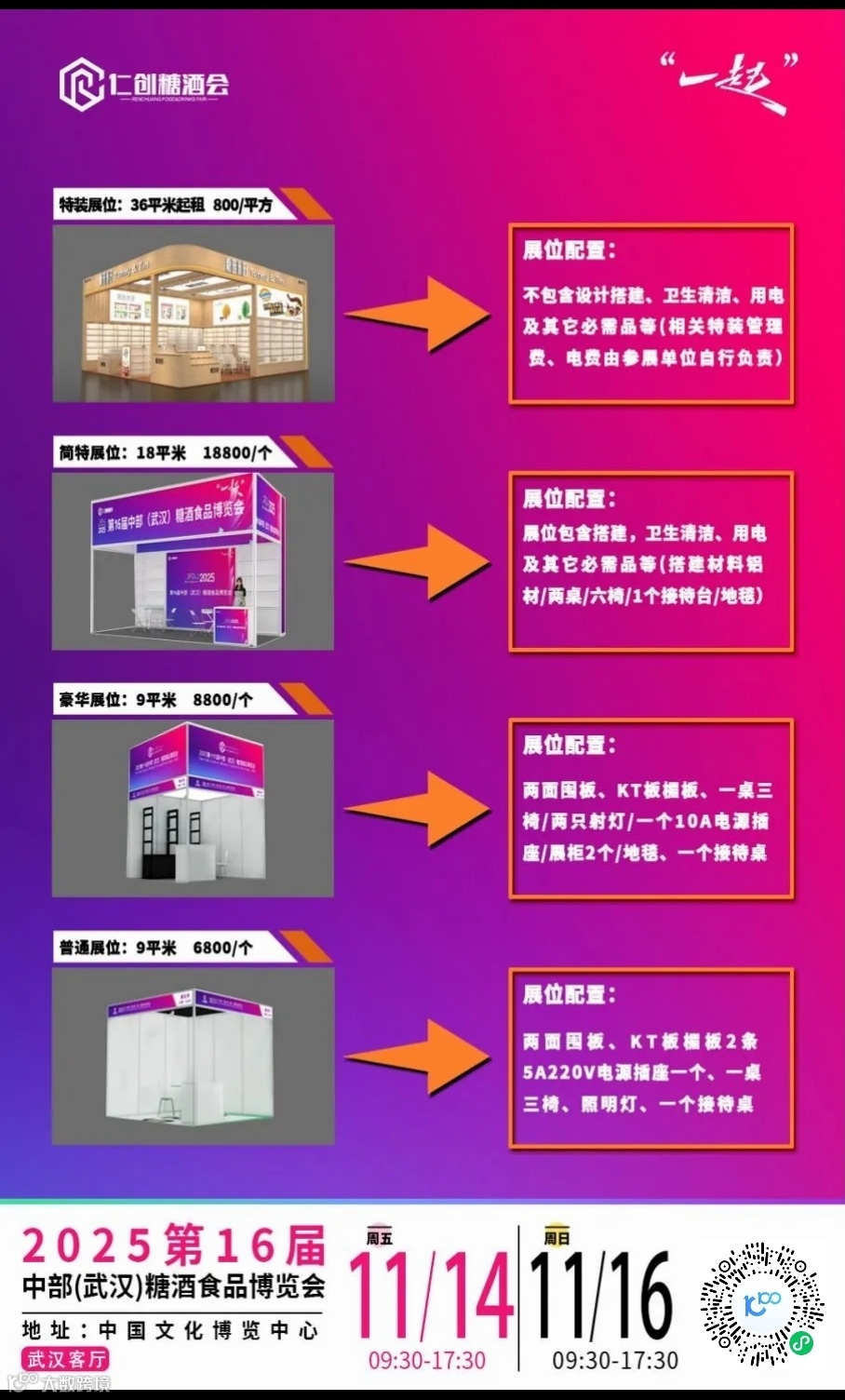 2025第16届中部(武汉)糖酒食品博览会,作为中部地区的糖酒行业专业展会,定档11月14-16日在武汉·中国文化博览中心(武汉客厅)举办。充分利用湖北在全国的地理优势和其在行业的战略地位,经过15届的积累和沉淀,武汉糖酒会已经成为各大品牌开发中部市场的优质招商平台。展会致力于打通产业沟通壁垒,并将仁创会展集团在中部地区的跨界资源融汇贯通,立足中部,辐射全国。缔造集品牌推广、贸易合作、信息交流等一体化的综合商贸平台。