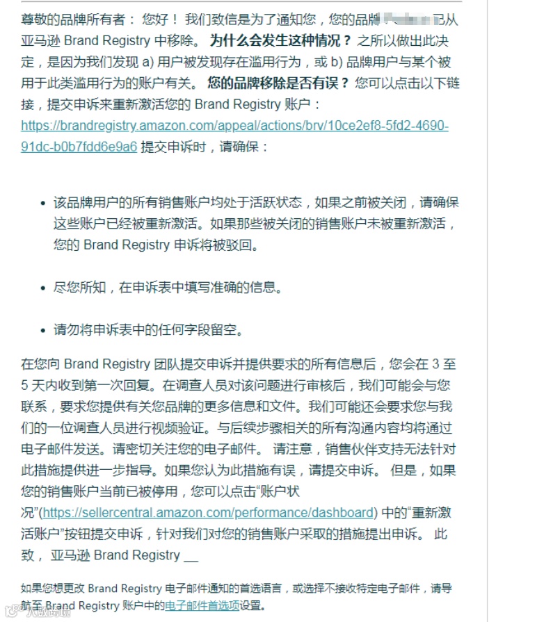若是收到品牌被移除通知,建议大家不要贸然进行申诉,而是先找出品牌被移除的真实原因,具体可对照上面提到的几种情况排查。找出原因后先解决问题再进行针对性的申诉,比如若是律师问题,可更换律师后再进行申诉。