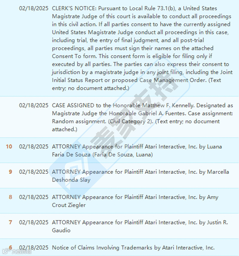 美国时间2月18日,知名游戏品牌Atari雅达利委托GBC律所在伊利诺伊州再次发起商标维权行动!此次维权涉及两起案件,案件号分别为25-cv-01656和25-cv-01659。目前,两起案件暂未获批TRO临时限制令,但Atari雅达利的维权行动已进入法律程序,麦家支持提醒相关跨境卖家务必提高警惕,避免踩雷。