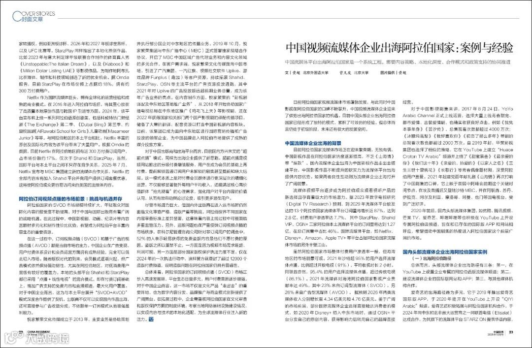 总之,中国流媒体平台出海阿拉伯国家是一个系统工程,需要内容策略、本地化深度、合作模式和政策支持的协同推进。通过精耕细作和长期投入,中国流媒体平台有望在这一重要市场取得突破性进展,成为中阿文化交流与合作的数字桥梁。