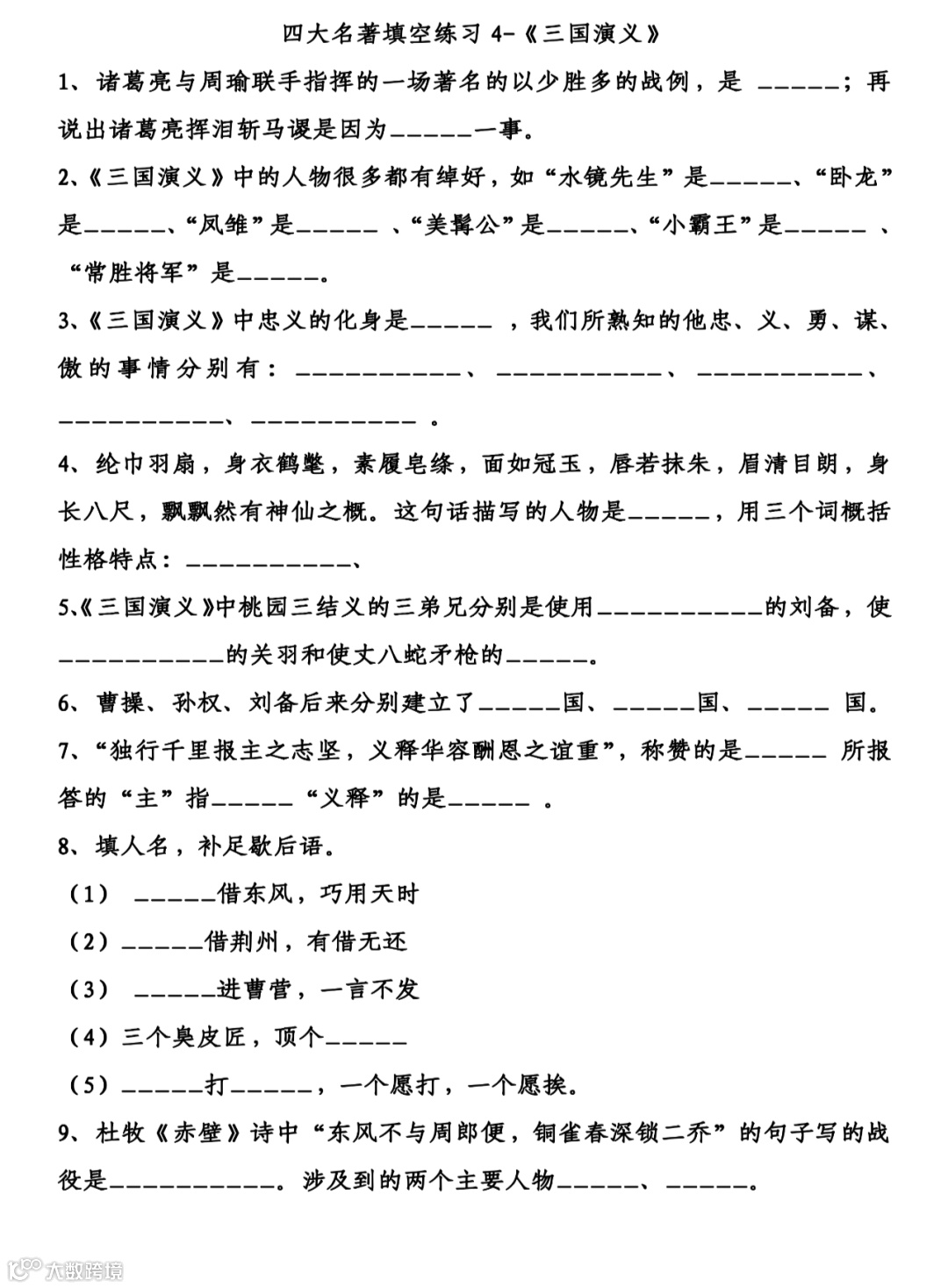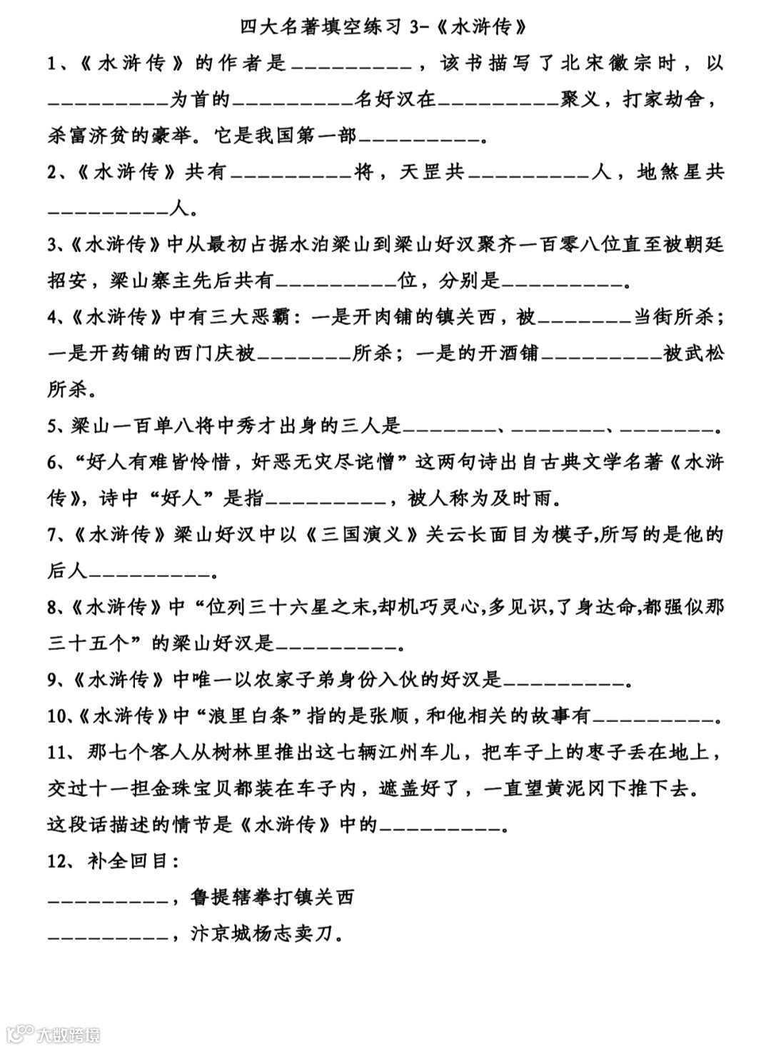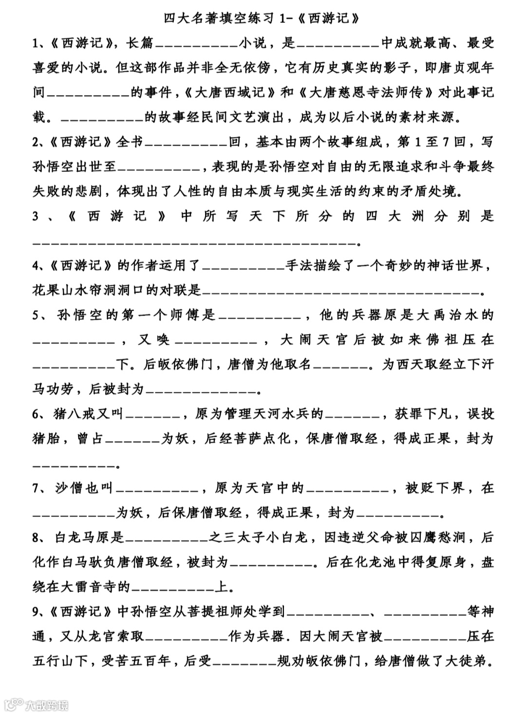 【学精选】暑假作业:《西游记》《红楼梦》《水浒传》《三国演义》填空练习