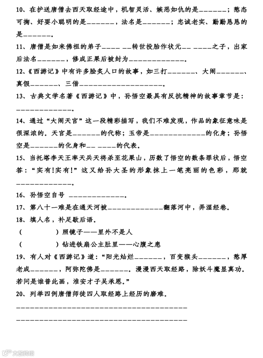19、有人对《西游记》道:“阳光灿烂猪八戒,百变猴头孙悟空,憨厚老成沙和尚,阿弥陀佛是唐僧。漫漫西天取经路,除妖斗魔显真功。若问是谁普此画,淮安才子吴承恩。”