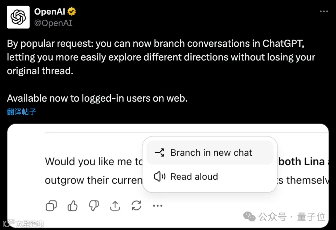 这一功能有助于团队协作和多线任务处理,但部分用户仍建议界面需要优化,比如在视觉层面更清晰地区分分支结构。目前分支对话已面向所有用户开放使用