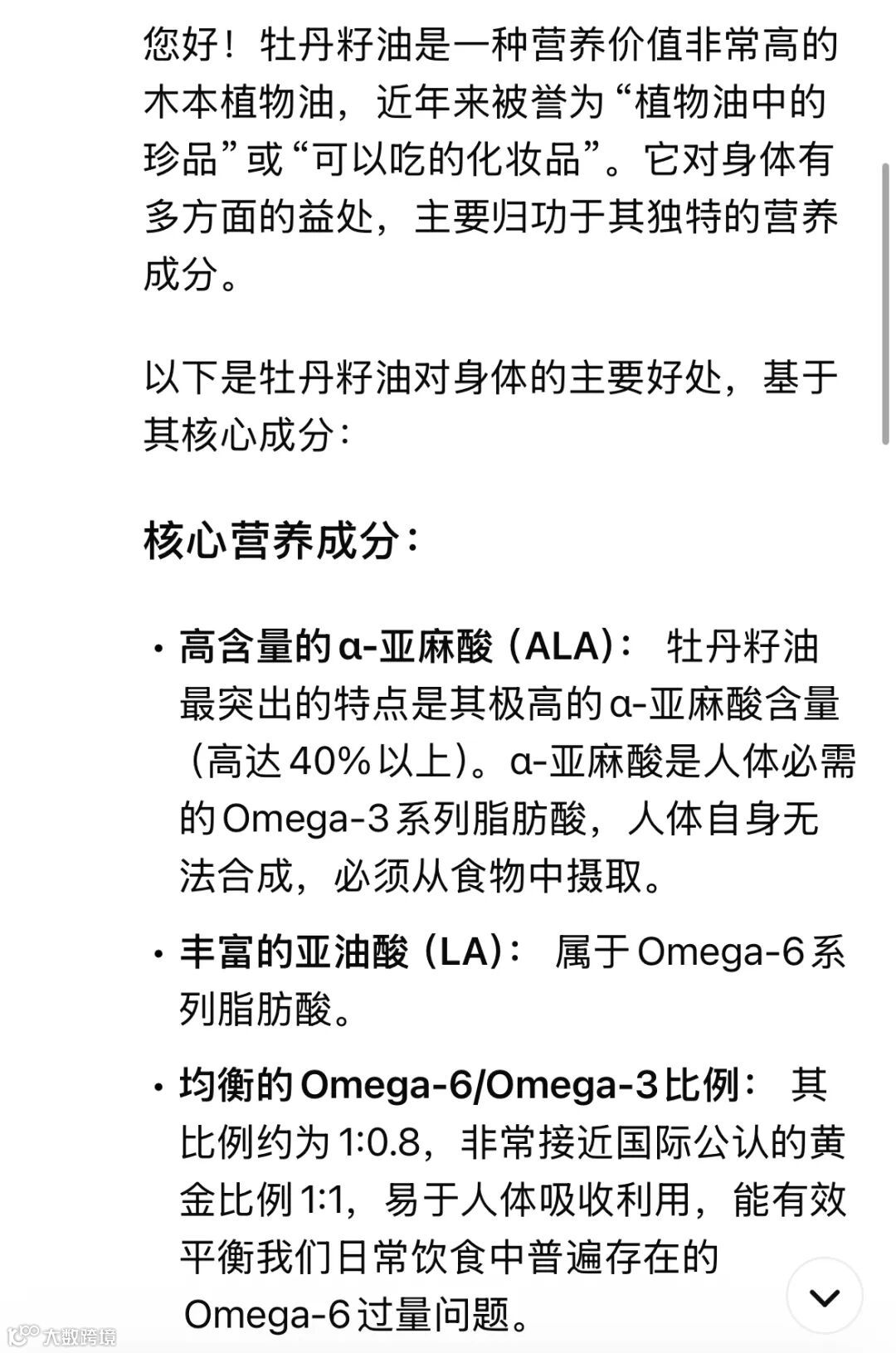 以上,是客观的,对“牡丹籽油”这种东西的介绍。