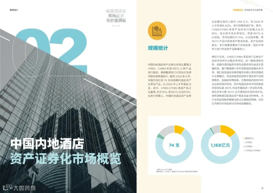 - 截至2025年9月,中国内地共有74支存续期内的酒店资产证券化产品,发行规模达1,168亿元人民币。