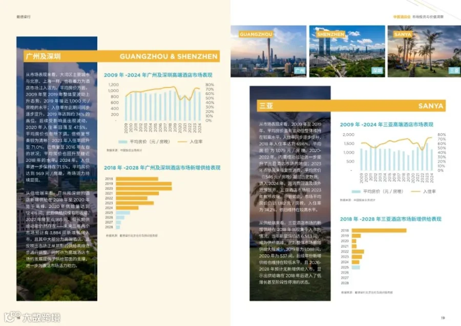 - 一线城市和核心旅游城市将继续引领全国酒店市场发展,粤港澳大湾区的新增活力尤为凸显。