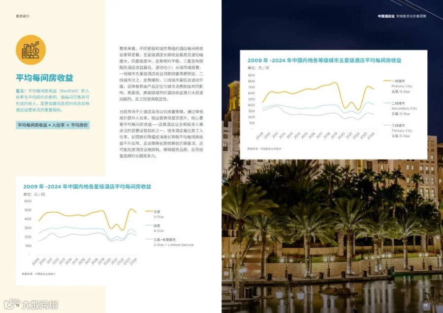 - 一线城市五星级酒店收益领跑但震荡更明显,三线城市最低且波动平缓。