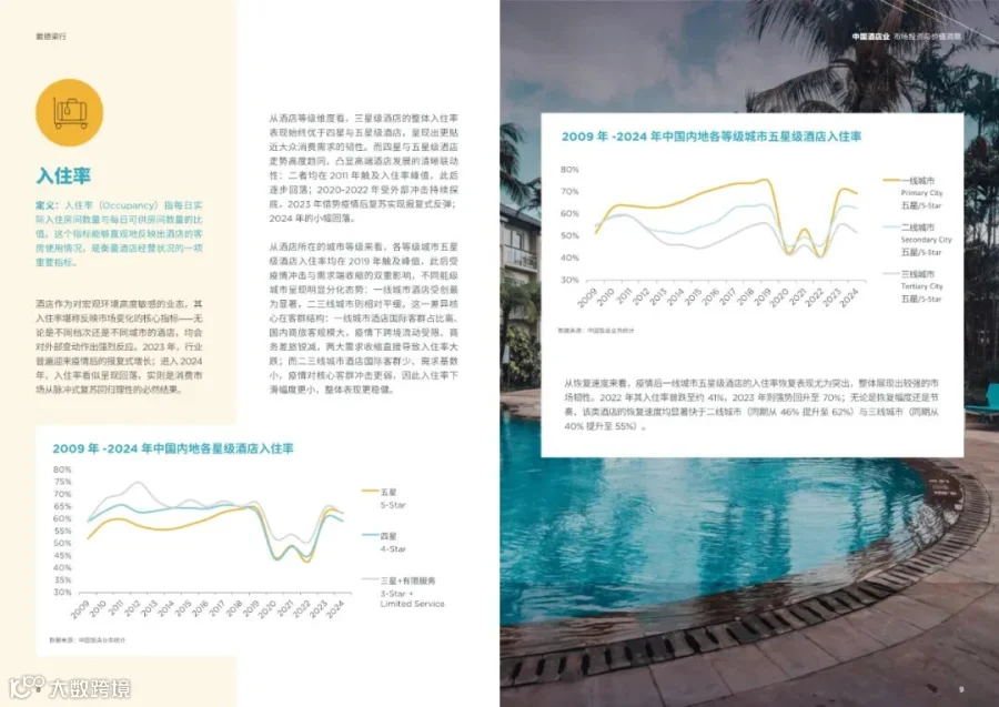 - 高端酒店(四星和五星)数量在2019年达到顶峰后逐步下降,主要由于星级制度的同质化瓶颈和经济形势的影响。