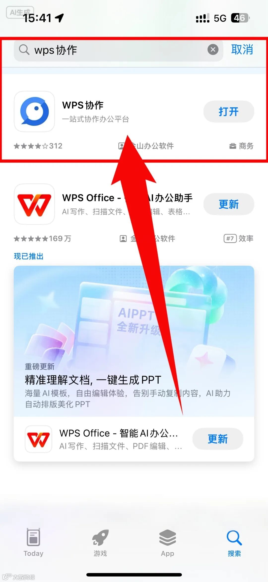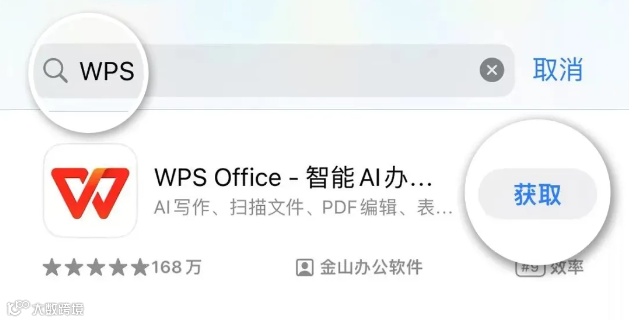 在app应用商店搜索「WPS」并下载