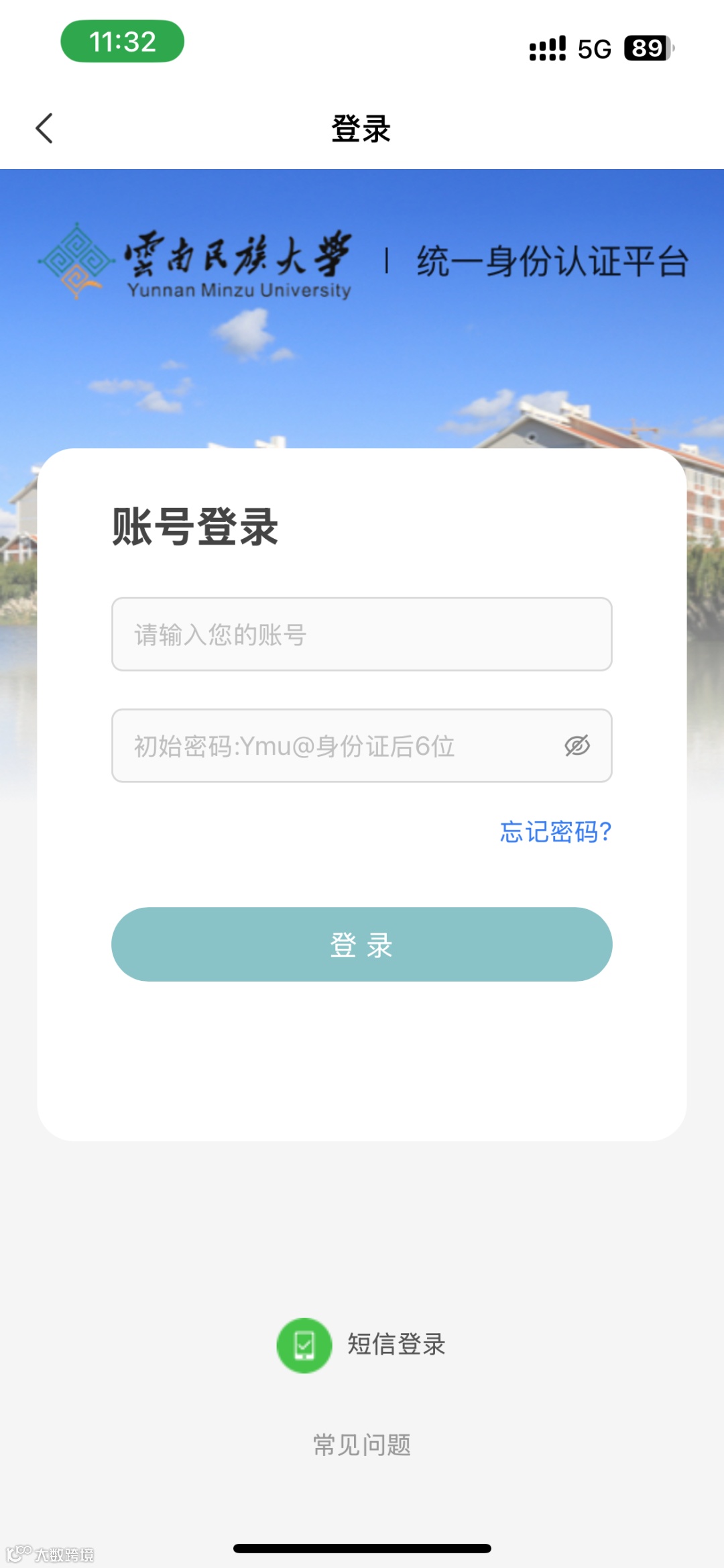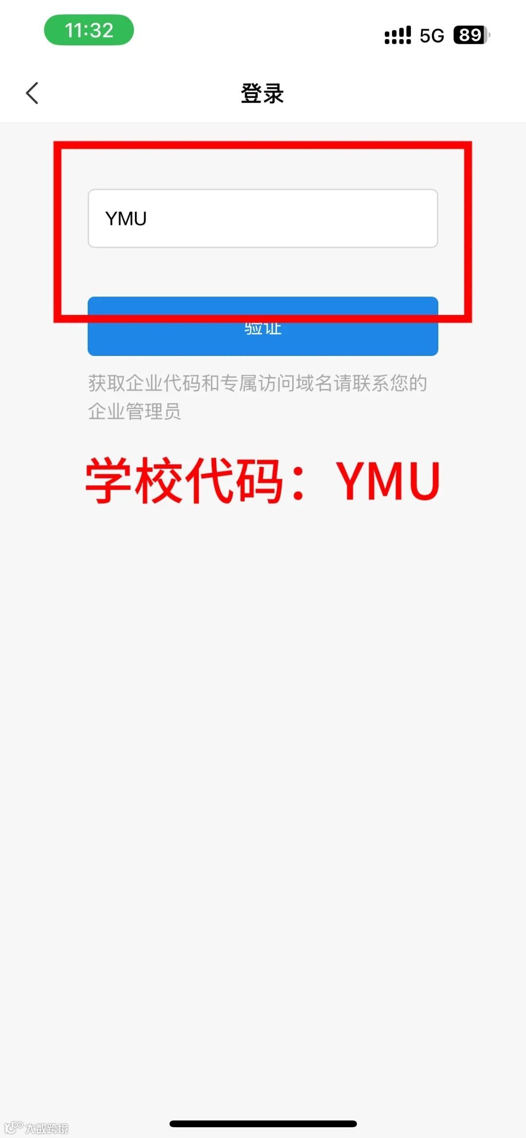 输入专属代码YMU,通过学校统一身份认证登录(输入学/工号和密码登录)