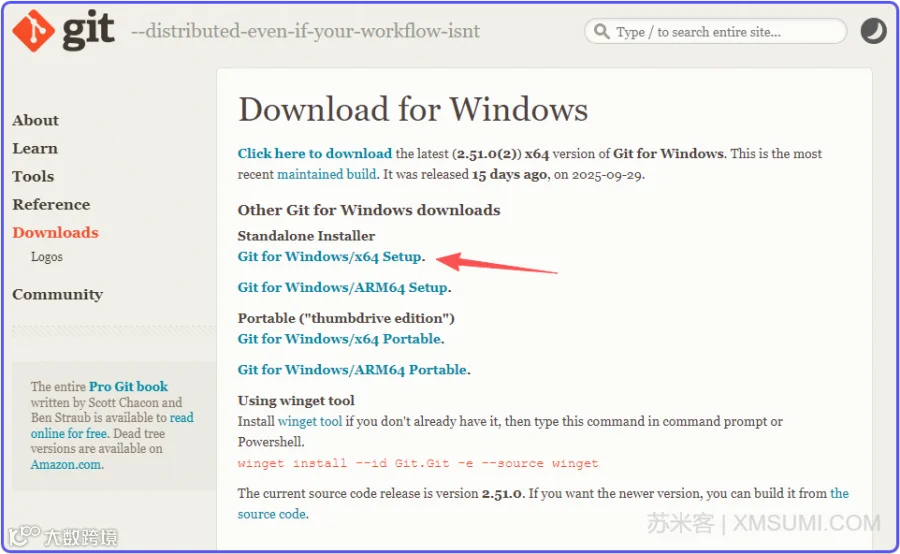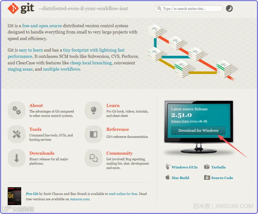 所以直接打开Git官网:https://git-scm.com,点击下载:
