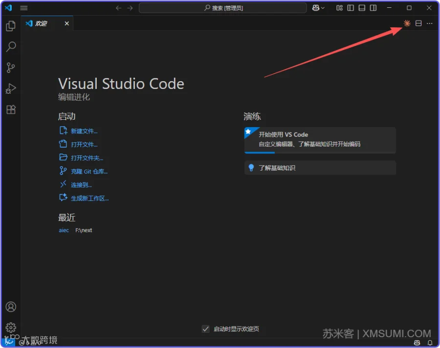 安装成功后重新打开VSCode,可以看到右上角的这个图标