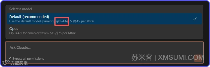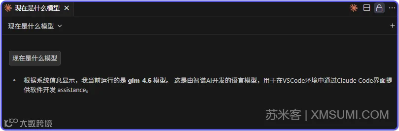 这里已经可以看到我们配置的glm-4.6模型已经选择成功了
