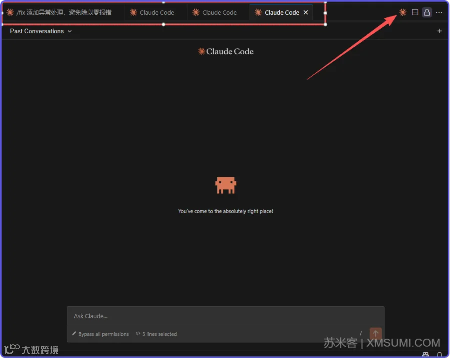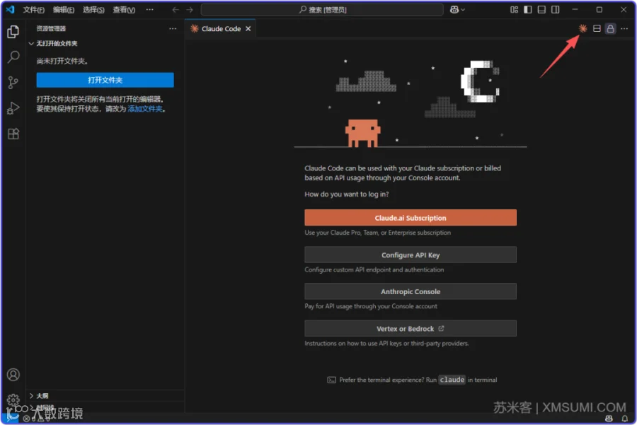 安装后,重新启动 VS Code,点右上角这个Claude Code的图标就可以正常使用了