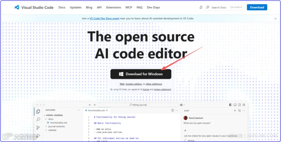 VSCode下载地址:https://code.visualstudio.com/,点击链接下载安装即可。