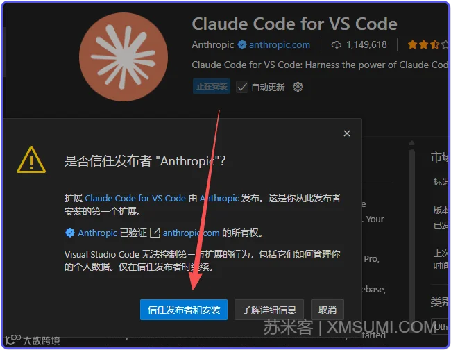 弹出提示点击「信任发布者和安装」即可