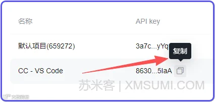 复制你的 key(稍后要贴到 VS Code Claude Code YOLO的API配置里)