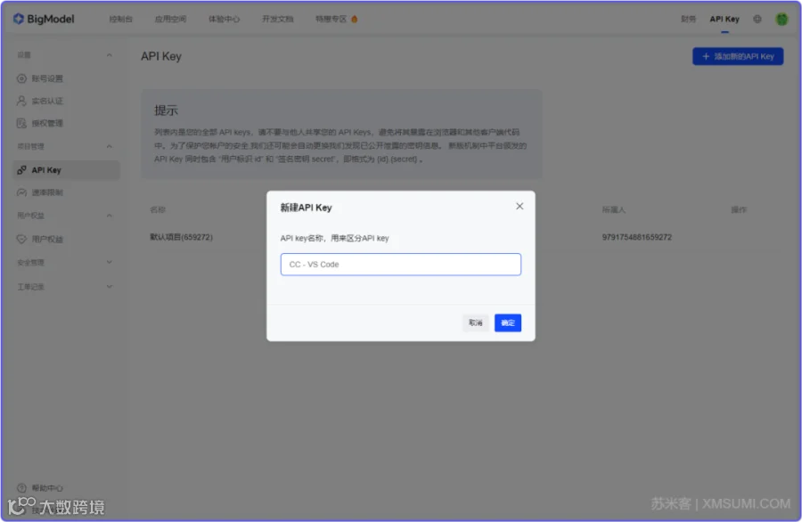 注册 / 获取 GLM-4.6 API Key,这里苏米推荐的是 智谱 AI :