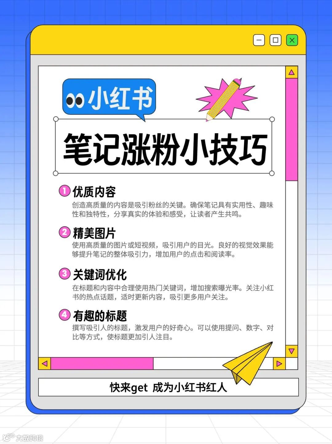 通过这些实用工具和资源,创作者可以更高效地进行小红书运营,提高内容质量和运营效果,实现从 0 到 1 再到 100 的快速增长。