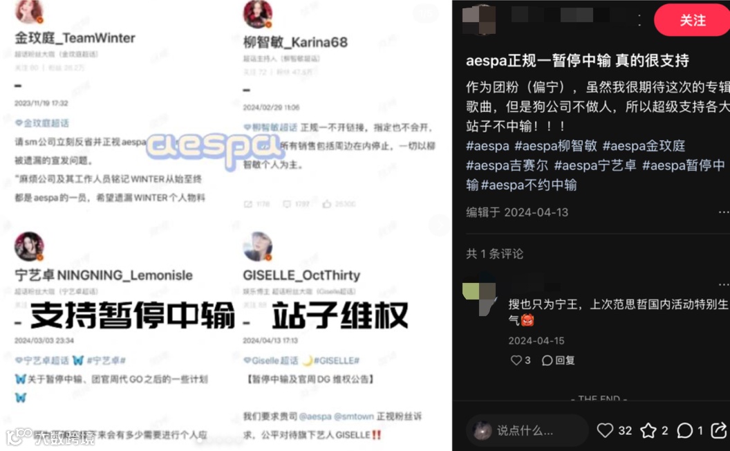 一方面,「中输」(中国粉丝集资购买专辑)在急剧下滑。 过去,韩国当红组合的中输占比常超50%,但2023年下半年却急转直下,直接拖累了多个组合的专辑销量。粉丝社群内部还出现了呼吁停止「内卷式购买」的现象。