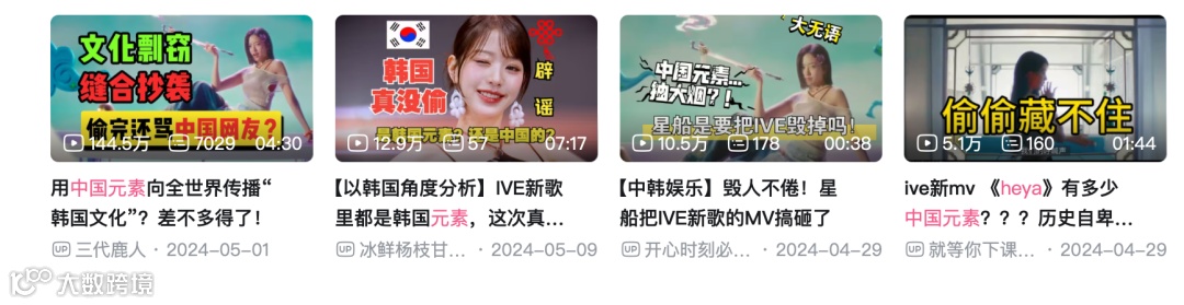 除了国家历史层面的争议,近些年来,文化挪用争议也在中韩之间频发,涉及服饰、节日、历史人物等等,其最严重的一次冲突莫过于2024年人气女团IVE的MV《HEYA》。该女团宣称制作理念是宣扬韩国文化,但其中却用了中国结、祥云等大量中国文化元素。文化挪用争议甚至蔓延至对欧美,导致「偷国」标签成为舆论对韩国的刻板印象之一。