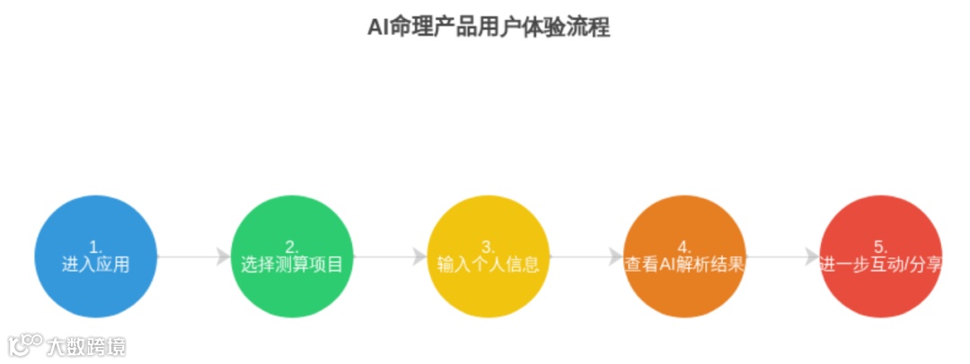下图展示了AI命理产品典型的用户体验流程,清晰地描绘了用户从进入应用到最终分享结果的完整路径: