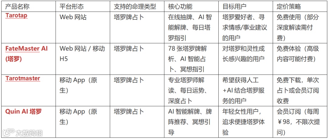 不同AI命理学产品在定位上各有侧重,服务的用户群体也有所区别: