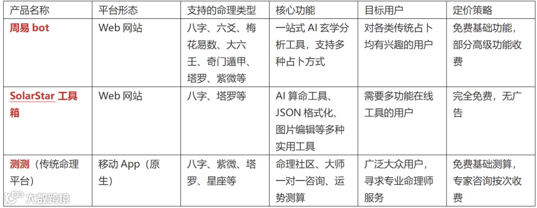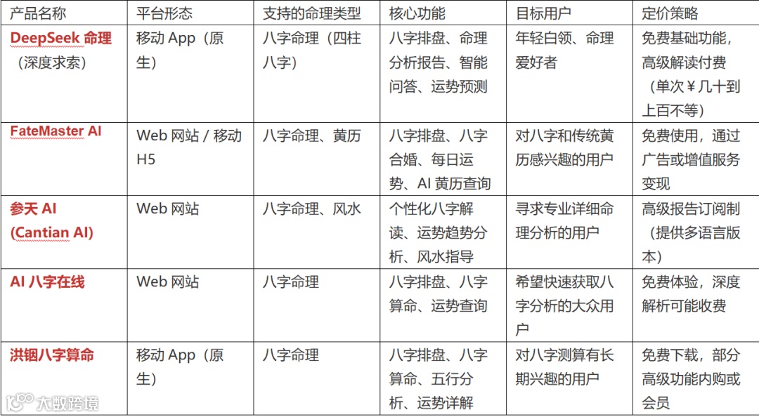 当前市场上涌现了多款融合人工智能与传统命理的产品。以下表格汇总了主要竞品的平台形态、支持的命理类型、核心功能、目标用户及定价策略: