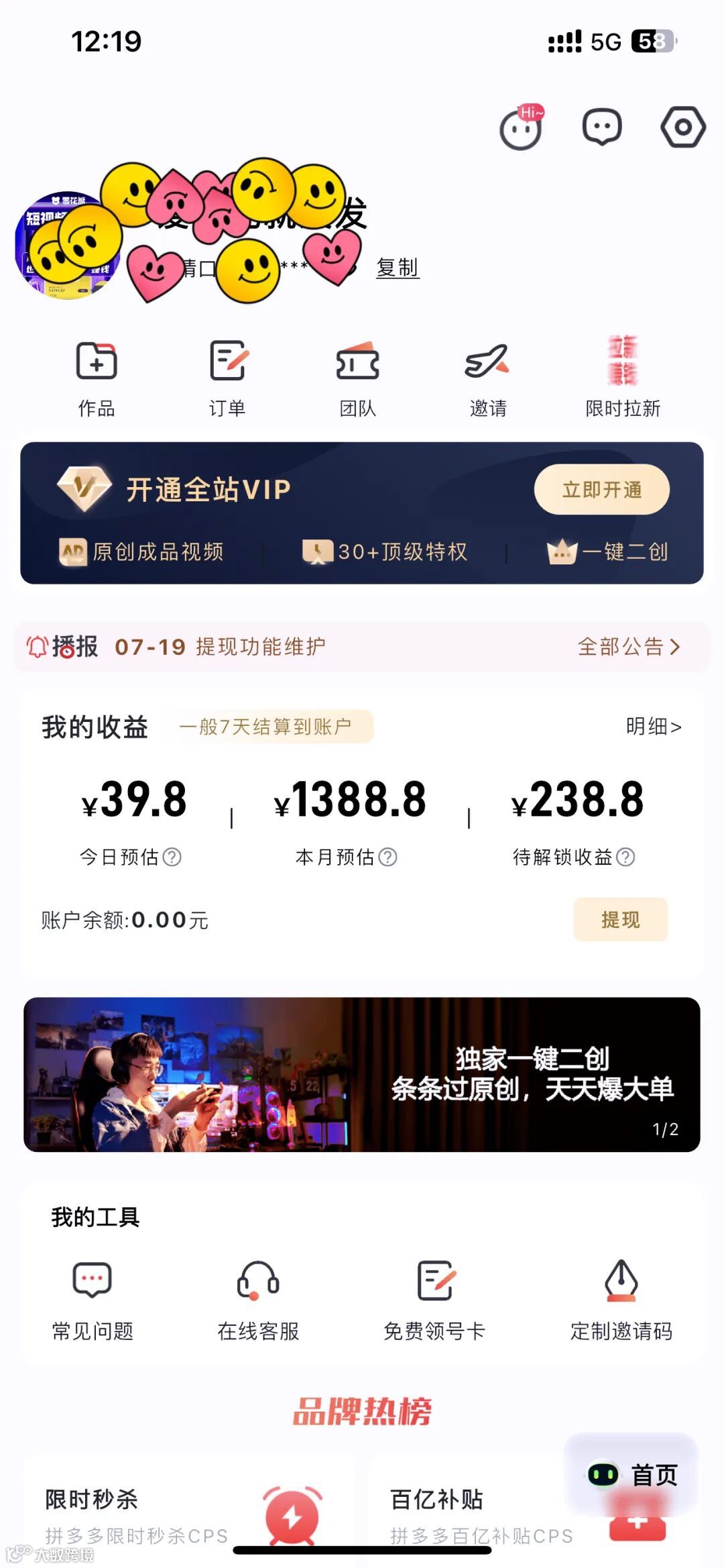 ✅0扣佣全平台变现:覆盖抖音/快手/视频号,挂载推广链接即可享受播放分佣,100%佣金直达,0粉丝也能开启收益之路