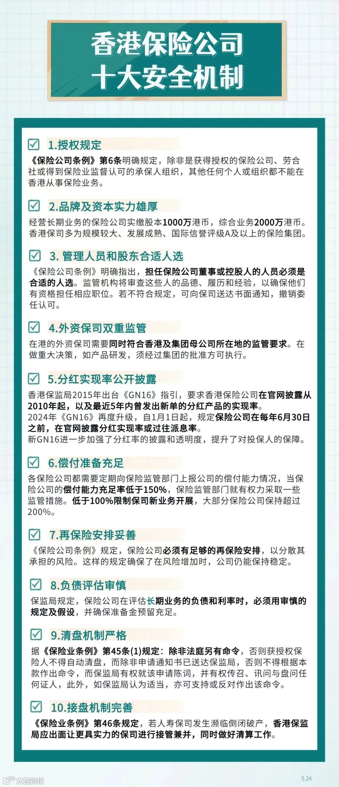 通过严格的监管规则、透明的分红披露、合理的收益调节以及客户优先的分配政策,香港保险市场构建了一套完善的机制,保障了从 “承诺” 到 “兑现” 的全流程透明与可靠,为投资者提供了稳健的长期保障与回报。