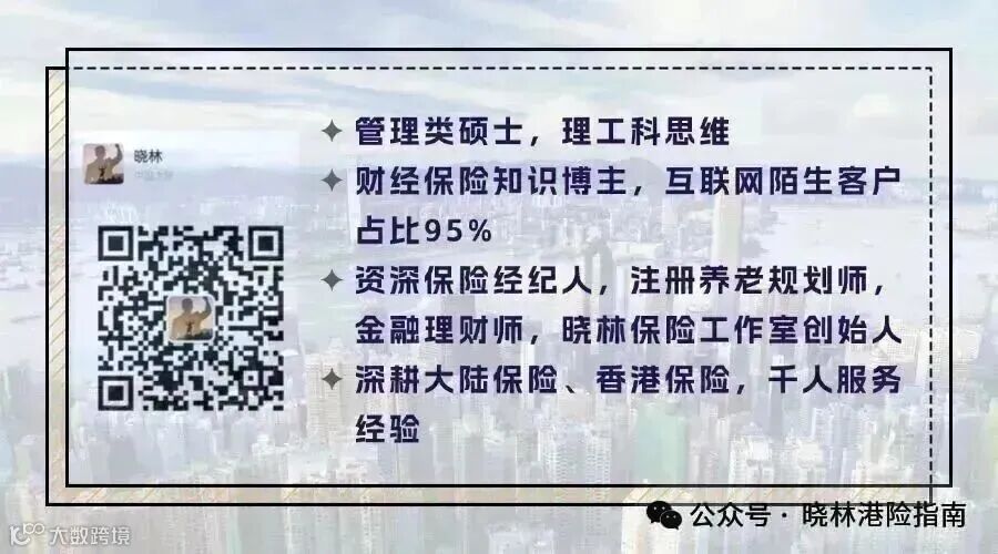 免责声明:本微信公众号所载任何文章、音视频、数据及资料并不构成亦不应被诠释为向香港境外之任何人士招揽、要约、出售、提供、建议或游说购买任何保险产品。上述任何资料仅供参考,有关内容只属一般资讯,适用于身处香港人士。不应被视为并且不构成专业意见或任何产品或服务的要约、招揽或建议,亦不可视为任何产品或服务的销售邀请。本微信公众号所载的产品及服务不代表都适合或适用于所有个别人士或任何类别的人士, 就上述任何资料提及的主题作出任何决定前,建议向专业人士寻求独立意见。本微信公众号不就所载文章、音视频、数据及资料的准确性、完整性、可靠性或适合任何特定用途,作出任何明示或暗示的说明、保证或陈述,也恕不负责该等文章、音视频、数据及资料之任何错误、遗漏或过时(如有)。本微信公众号无意于中国内地向任何人士作分发或复制,明确表明概不因他人使用或诠释以上之任何资料而承担任何责任。