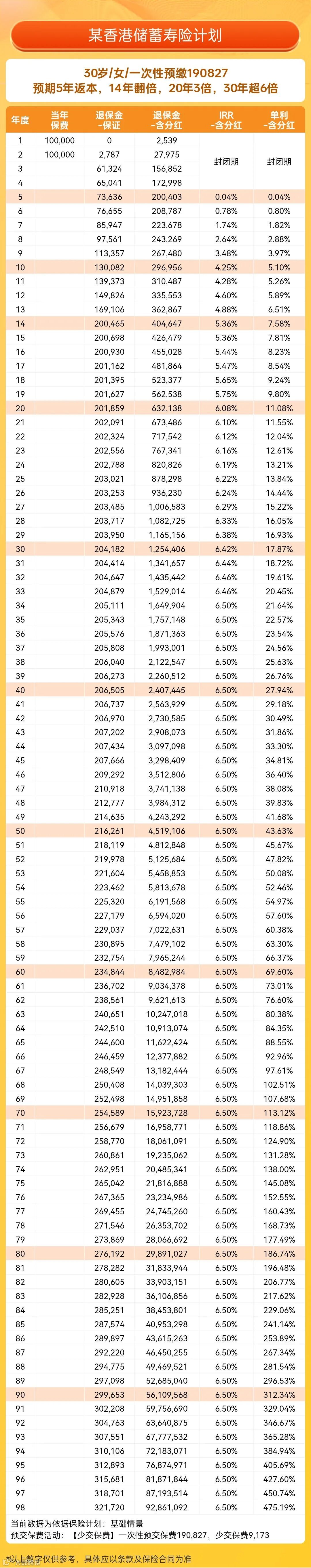 香港的主流分红储蓄险,长期来看预期收益IRR都能达到6.5%,和内地主流分红型增额寿相比收益优势巨大!