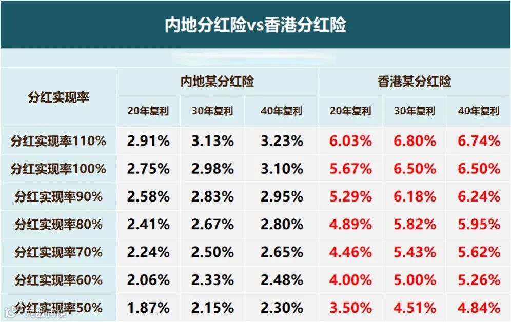 哪怕是分红实现率都打折扣,港险的优势也十分明显