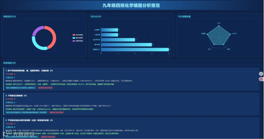 **改进建议**:复习常见混合物的分离原理(如过滤适用于固体 - 液体分离),制作对比表格(如溶解过滤蒸发 vs 分液蒸馏),并通过实验视频或图表强化记忆。
