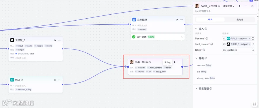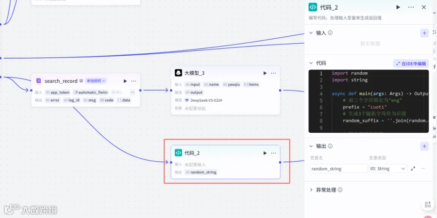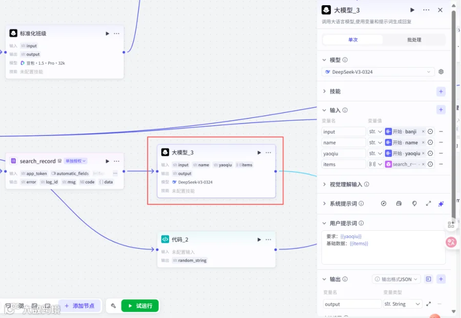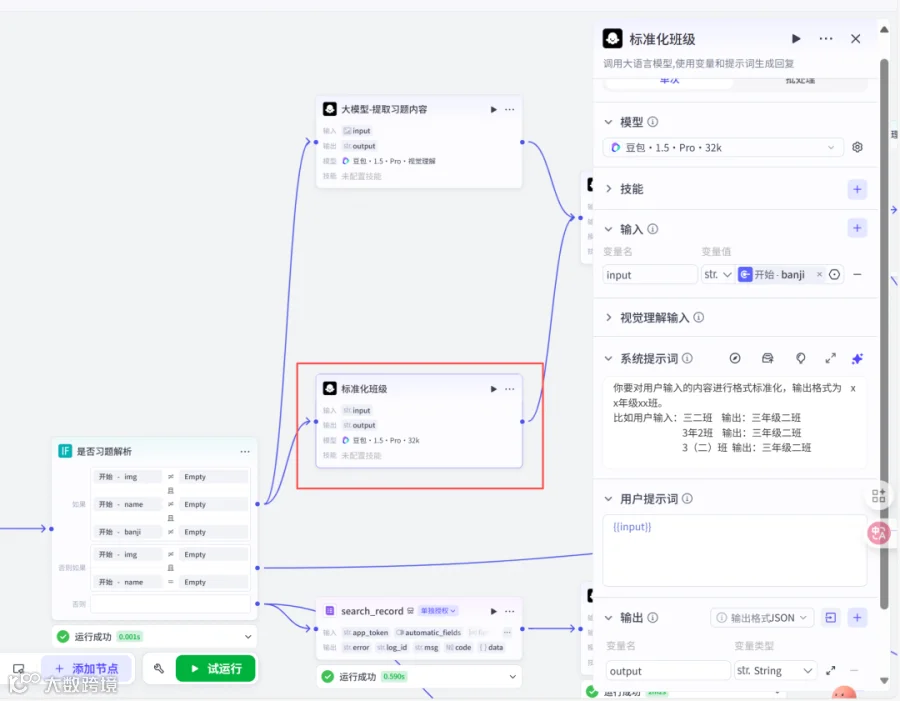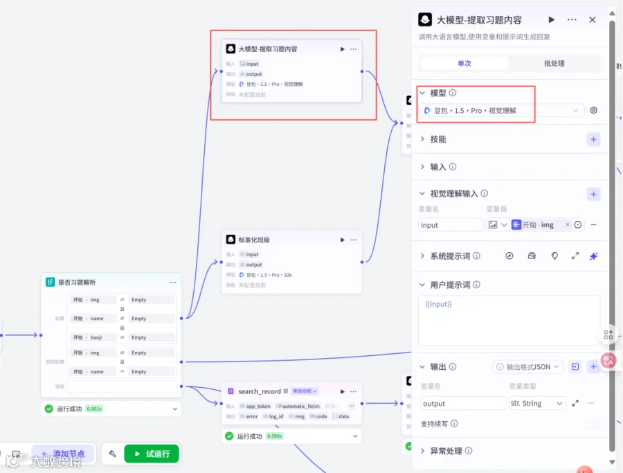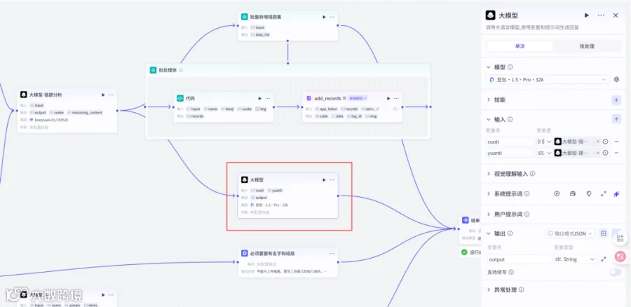 2.3 添加大模型节点重命名为大模型-提取习题内容