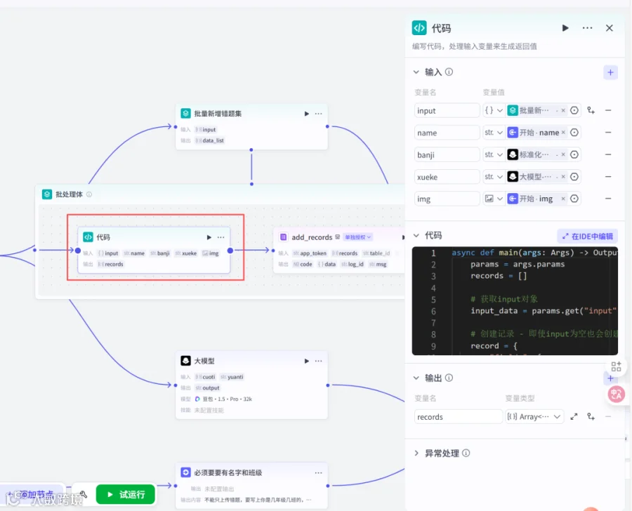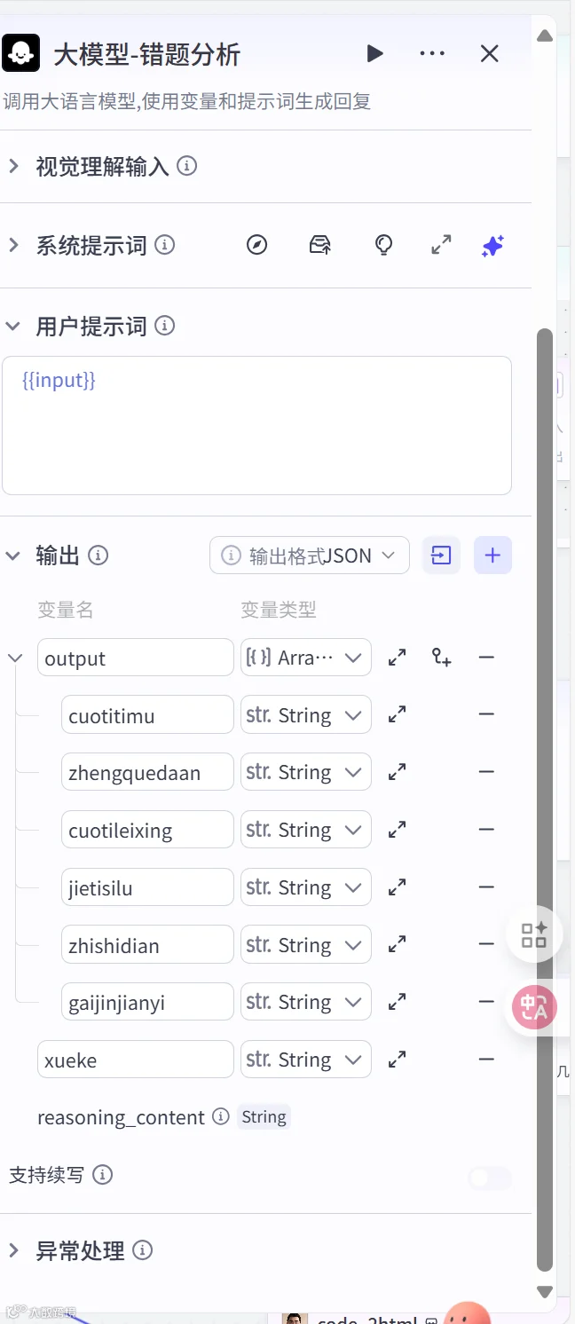 老师批改作业时,是不是总被错题处理绊住脚?对着一摞作业本,得逐题辨认错题内容、分析错误类型,还要梳理对应的知识点和改进建议,耗上几小时不说,整理的记录还零散,后续想统计班级错题情况更是麻烦;家长辅导孩子时也一样,孩子作业错了一片,问错在哪、怎么改,自己要么讲不透解题思路,要么没法把错题系统存起来,下次复习还是抓不住重点。其实,用 Coze 的一个工作流就能解决这些麻烦,它能自动化完成错题处理全流程 —— 从上传错题图片自动提取内容,到分析错误类型、生成解题思路,再到把错题存进多维表格、生成统计大屏,不用手动逐题整理,你只要上传错题图片、填好班级姓名,剩下的事儿全交给它,不管是老师批量批改还是家长针对性辅导都特别方便。下面就一步步教大家怎么用。