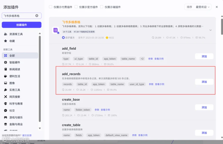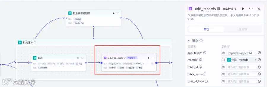 2.8添加插件飞书多维表格的add_records(循环体内)