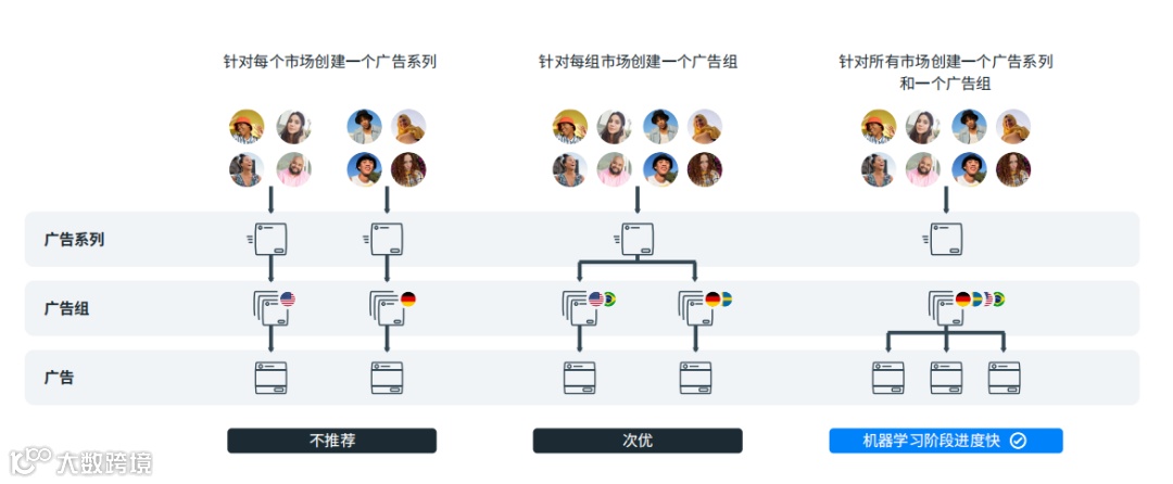 有些新手总是会问,怎么我的广告一直跑不起来,一看他的账户,复杂的广告结构,好几个广告组测细分受众,每个组又没多少预算,受众小,预算少,怎么跑的起来嘛?