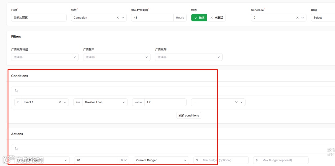许多新手都会把更多时间放在盯盘优化上,我个人的建议是把盯盘交给AI会更好,为什么呢?新手心态不稳比较容易慌张,可能会因为一时的效果不好就去关停广告,这样对账户稳定性非常不利。前期最好什么都不管,跑个3天再去观察数据,关停部分成效太差的,剩下的可以在尤里改后台设置自动优化规则,当成效大于多少时自动加预算,小于多少自动关停,Facebook后台也可以设置自动规则,区别就是尤里改可以批量化管理账户,而FB需要单个账户单独设置,手头账户比较多的团队使用尤里改可以节省更多人力成本。