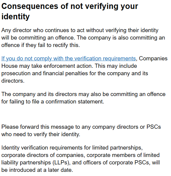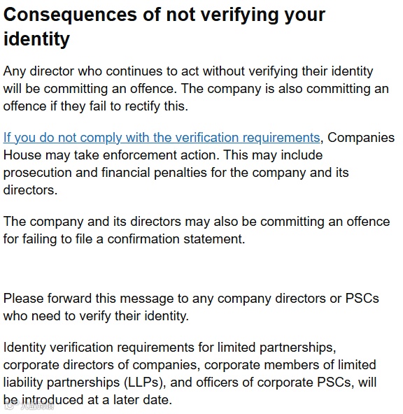 未能向公司注册处验证您的身份并获得个人代码可能会导致以下严重后果: