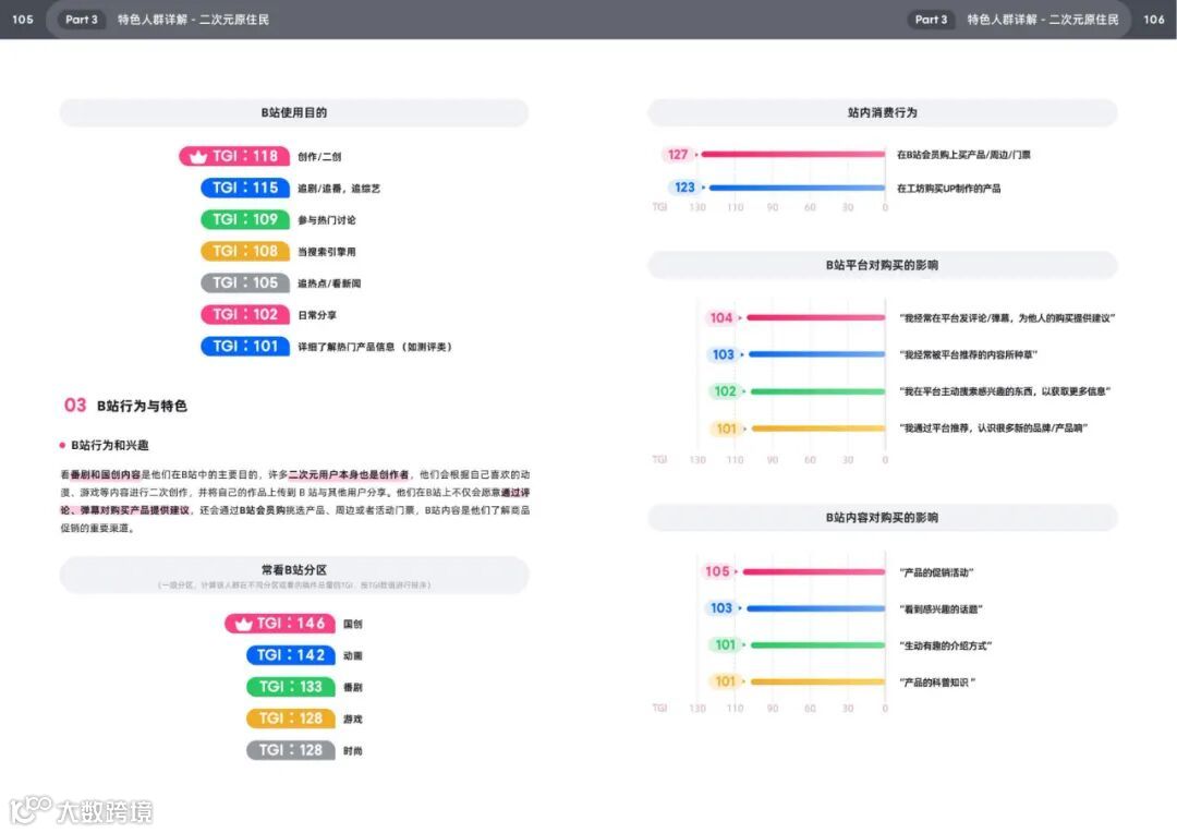 · 行为特征:日均逛番剧区超2.5小时,参与二创(如MAD剪辑、同人绘画),通过会员购购买周边(TGI 112)。