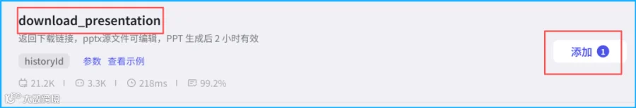 作用:利用这个插件中内置的大模型,返回一个下载链接,下载的pptx源文件可编辑,PPT生成后2小时有效,请及时下载