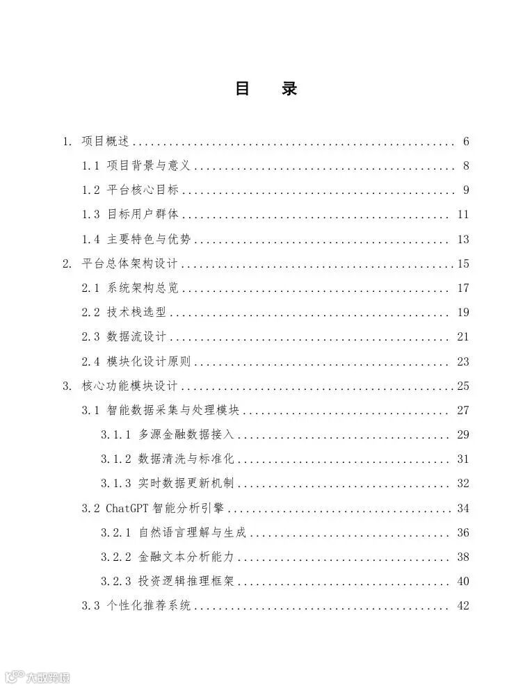 首先,平台将实现多维数据的智能整合与解读。系统将实时接入上市公司财报、行业研报、新闻动态、舆情数据及市场交易信息,通过ChatGPT对非结构化文本进行深度解析,自动提取关键财务指标、风险提示、业务动向等要素,并生成简明易懂的分析摘要。例如,针对一份百页年报,平台可在数秒内输出核心结论,如“营收同比增长15%,但毛利率下降2个百分点,主要受原材料成本上升影响”。