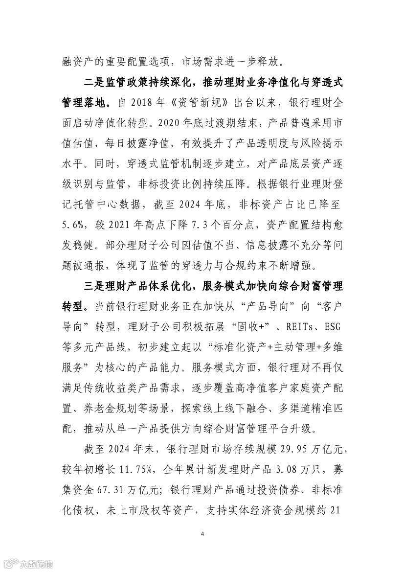 以下是对《中国银行业理财业务发展报告暨理财公司年鉴(2025)》的全面解读分析,结合核心数据和行业趋势,分模块呈现关键结论: