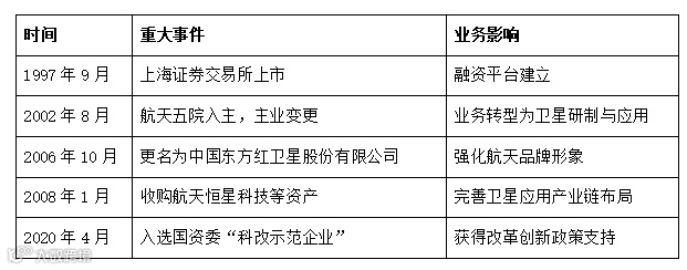 发展历程方面,公司前身为中国泛旅实业发展股份有限公司,主营旅游业。2002年,中国航天科技集团公司五院通过股权受让成为公司控股股东,公司将主营业务转变为卫星及相关产品的研制,更名为“中国天地卫星股份有限公司”。2006年,公司正式更名为“中国东方红卫星股份有限公司”,证券简称保持“中国卫星”不变。此后,公司通过多次融资和资产收购,逐步完善了在宇航制造和卫星应用全产业链的布局。