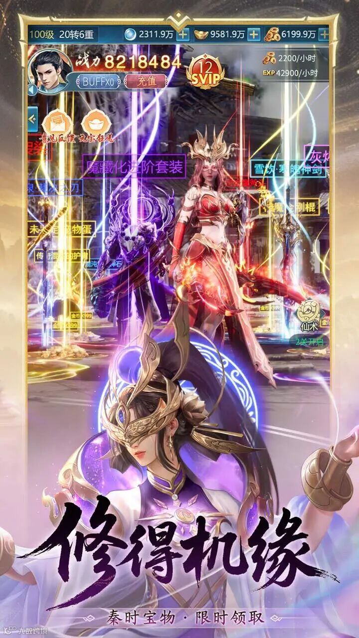 玩家可从剑侠、灵法、玄宗、药王四大基础职业中择一而修,通过"龙珠探秘"系统解锁上古神兵,在九幽魔窟、万兽妖塔等特色副本中淬炼神装。
