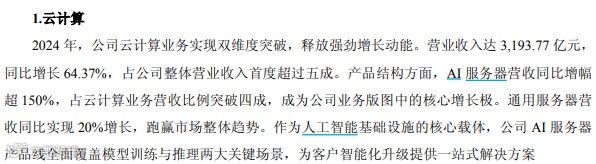 浪潮信息的半年报数据还没有出来,我们假设浪潮信息的全年营收保持2024年的增速,则总营收至少达到1900亿元。