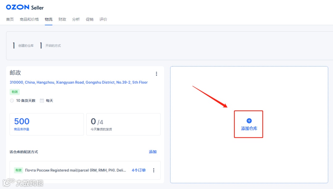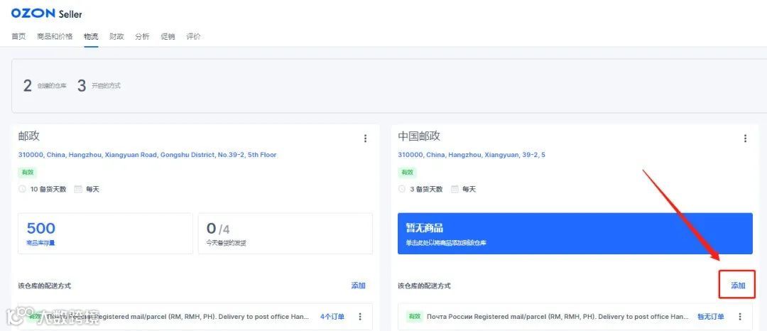 - 已添加配送方式的仓库可编辑【库存管理】和【添加方式】。